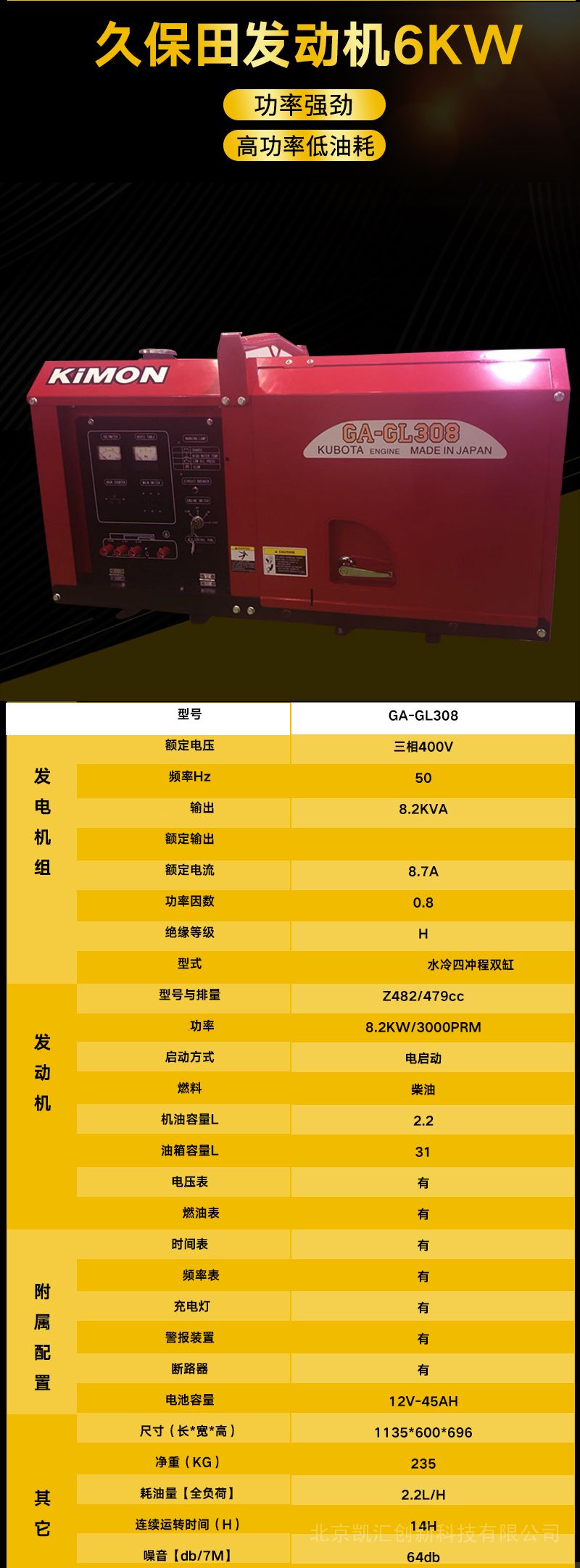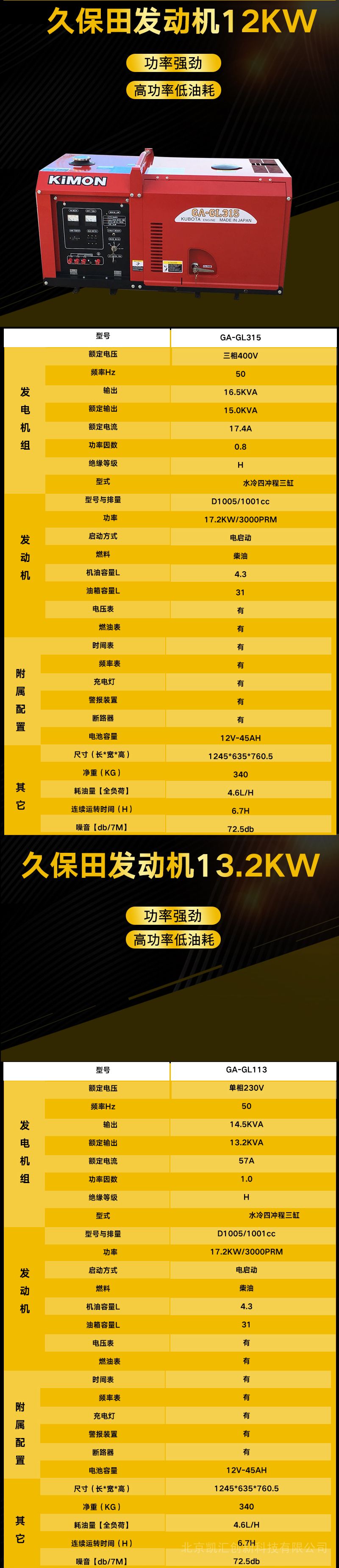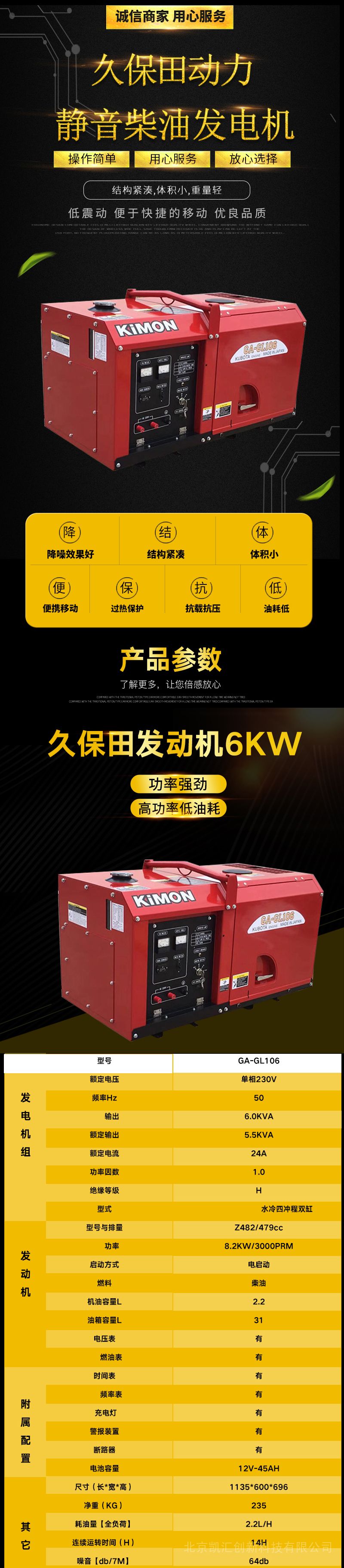 久保田日本动力柴油发电机组 GL系列 静音式 6kw-28kwGA-GL106