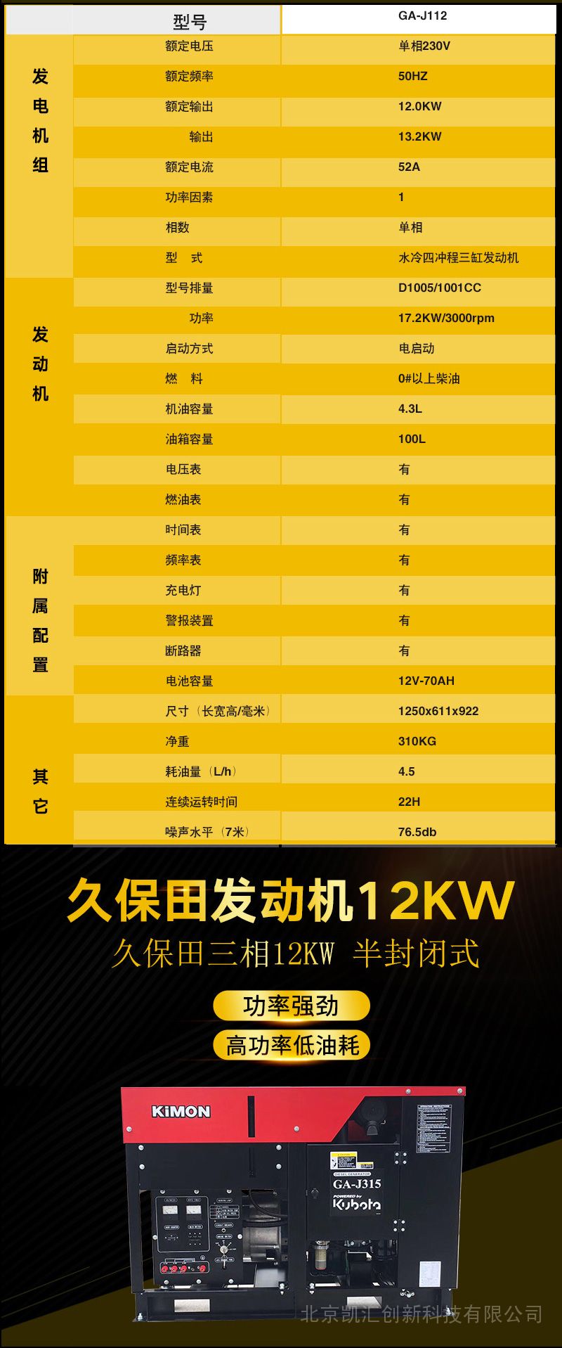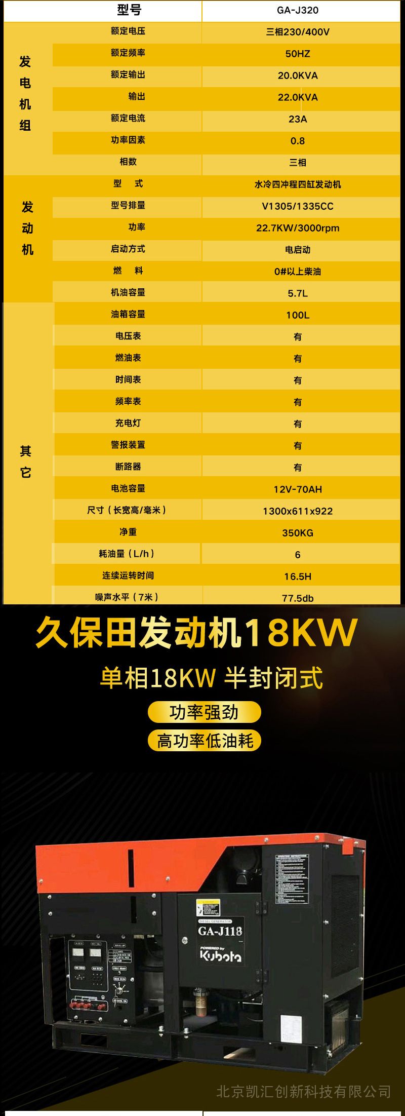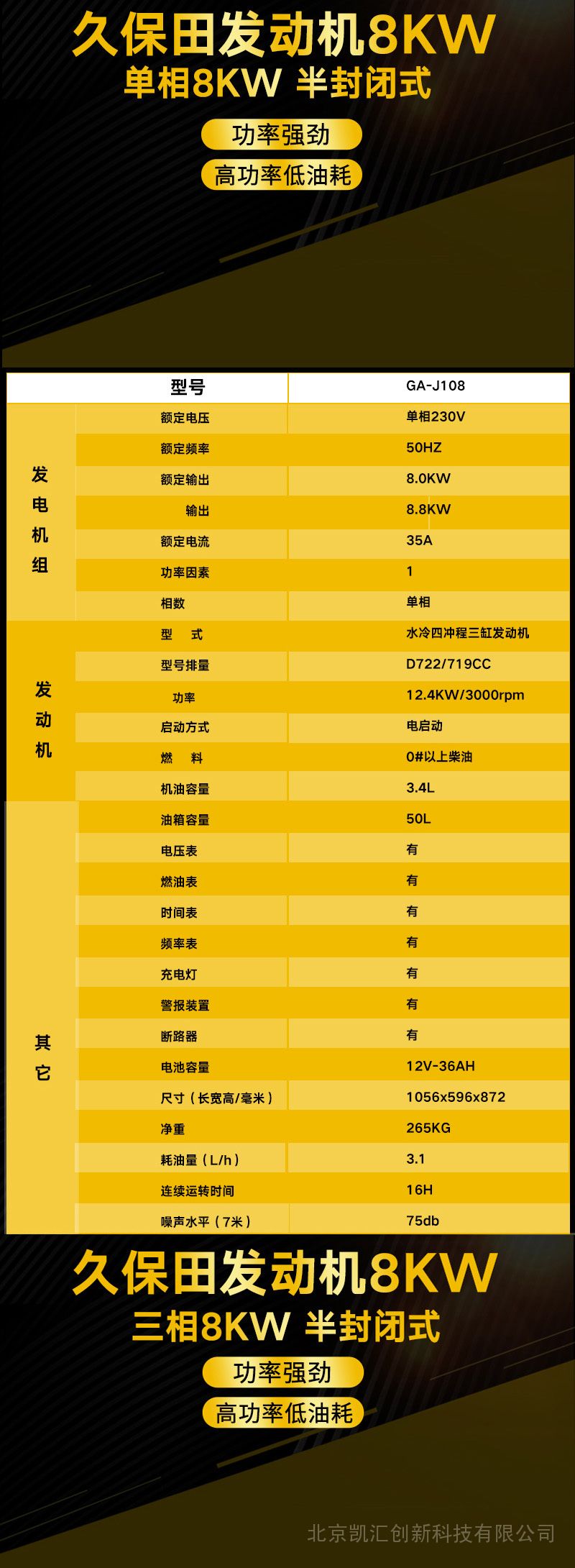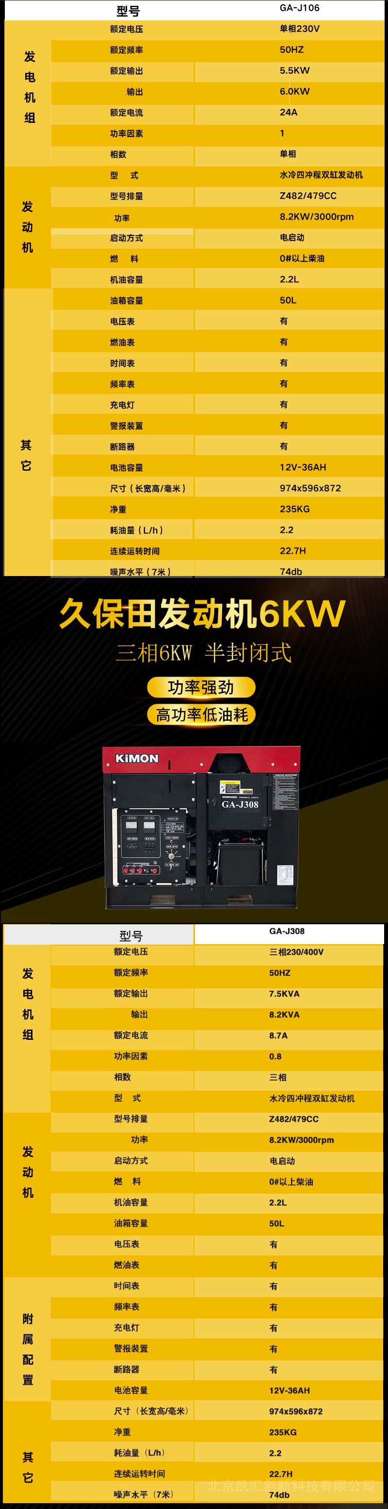 久保田日本动力柴油发电机组技术参数 J系列 半封闭式GA-J106