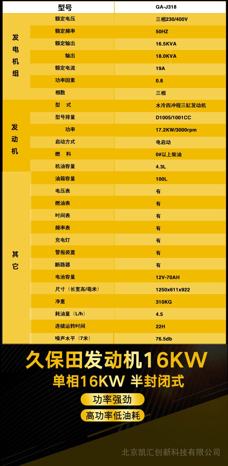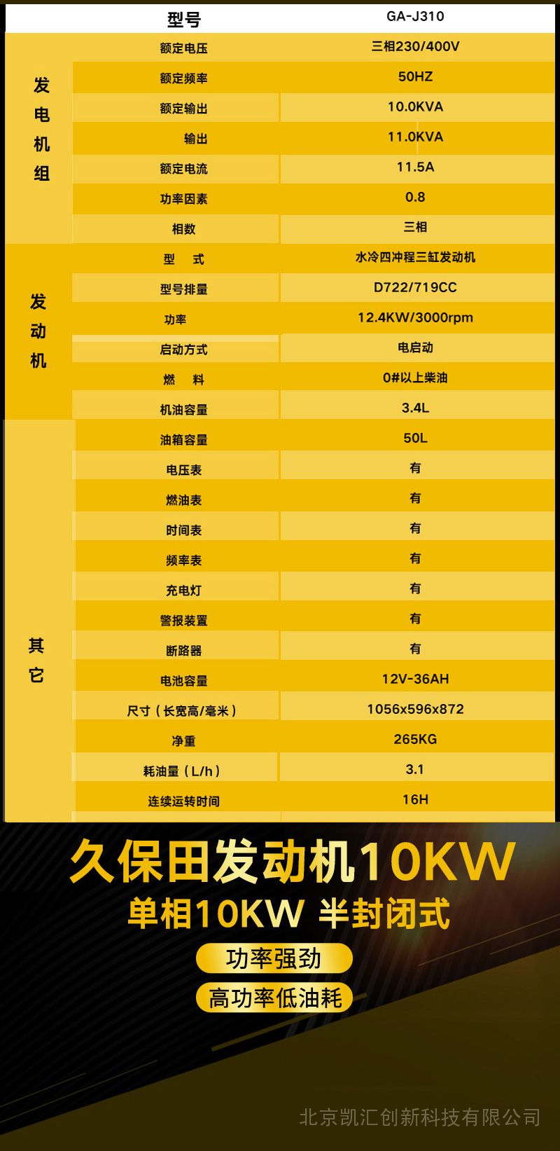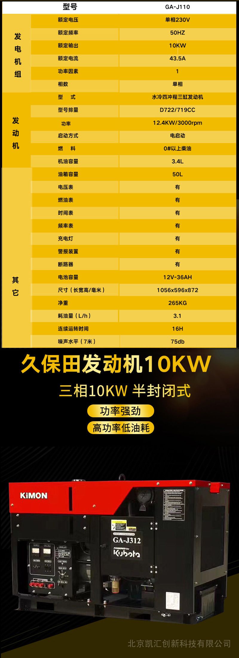 久保田日本动力柴油发电机组技术参数 J系列 半封闭式GA-J106