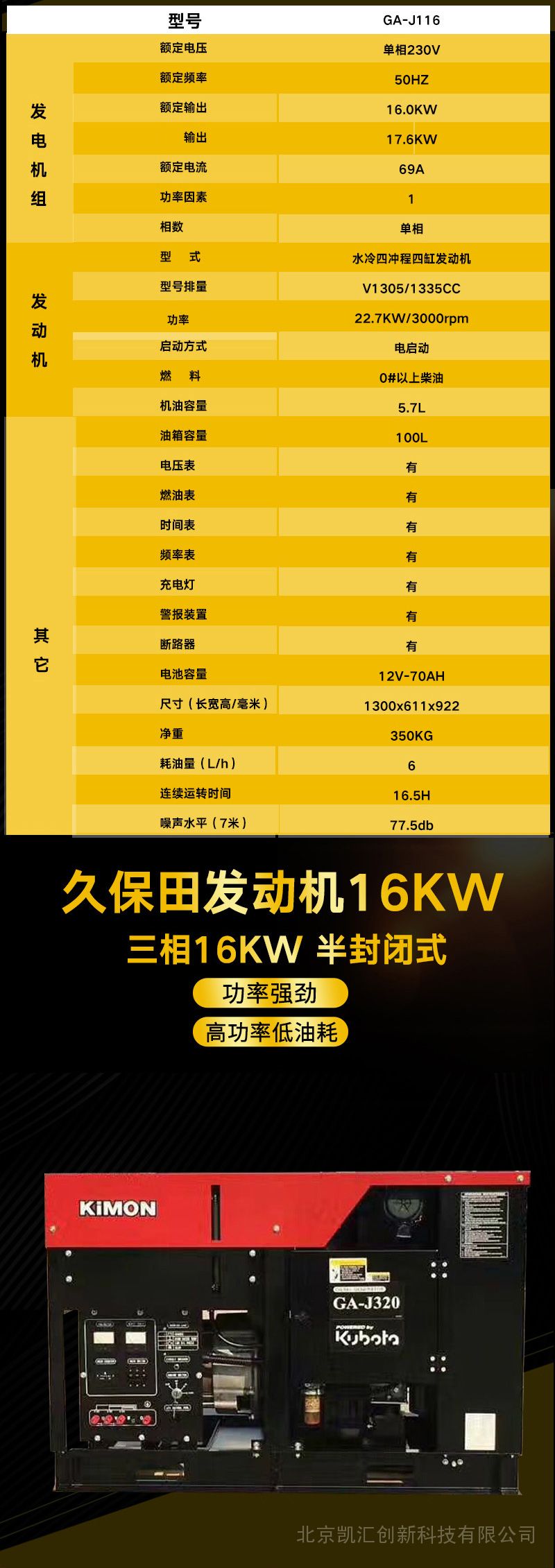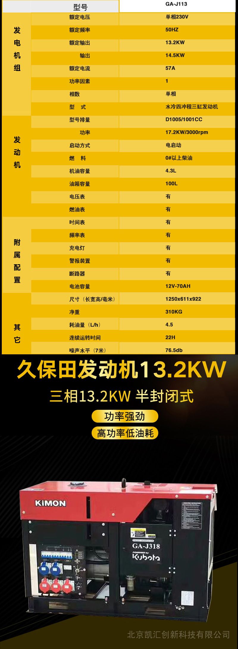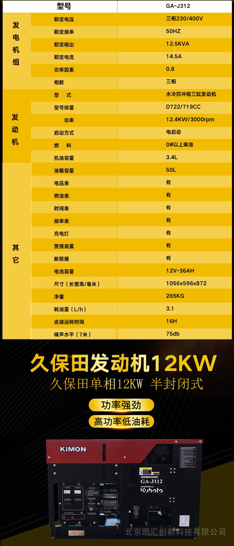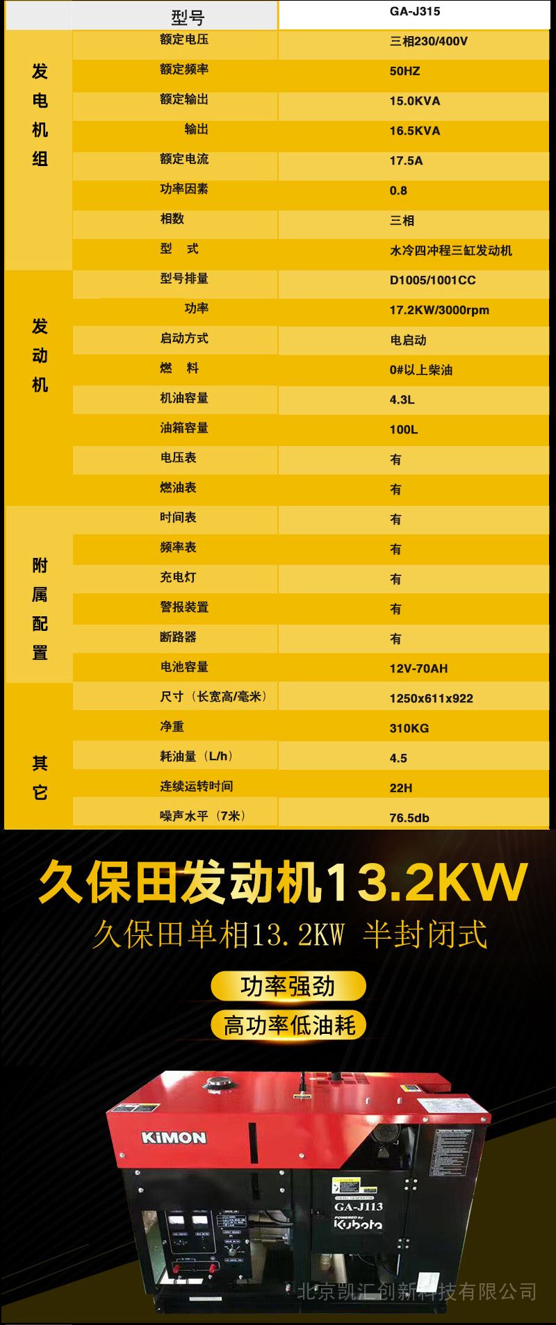 久保田日本动力柴油发电机组技术参数 J系列 半封闭式GA-J106