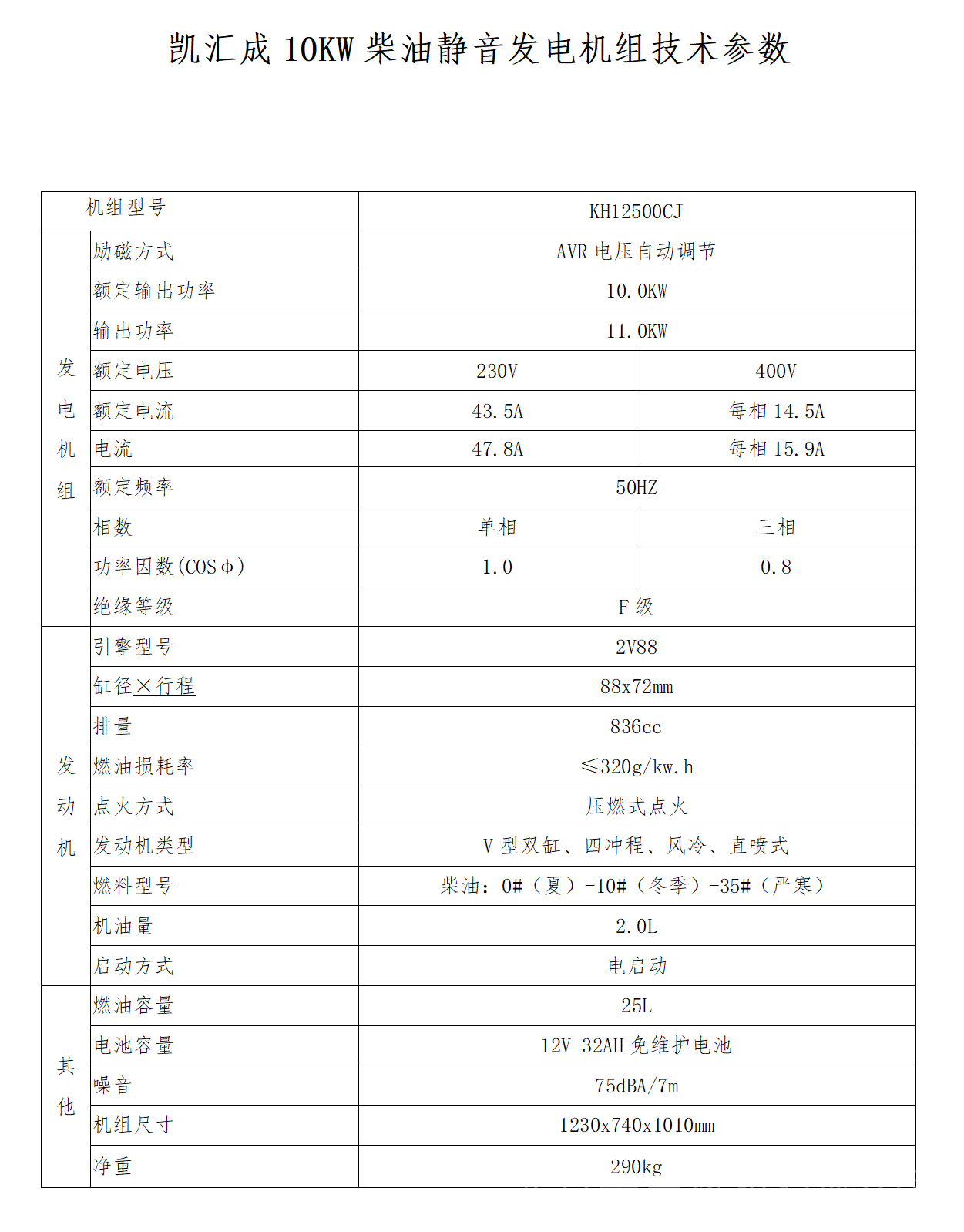 凯汇成品牌静音柴油发电机 10KW柴油静音发电机组KH12500CJ