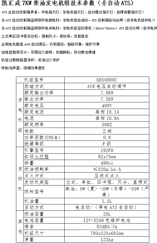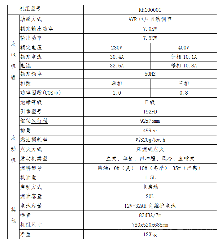 详细信息| 询价留言品牌:凯汇成 加工定制:是 型号:KH10000C 输出功率:7.0 KW 额定电流:30.4 A 频率:50 Hz 转速:1500 rpm 电压:230 V 频率:50 Hz -