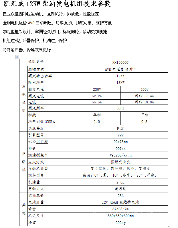 详细信息| 询价留言品牌:凯汇成 加工定制:是 型号:KH12500C 输出功率:10 KW 额定电流:43.5 A 频率:50 Hz 转速:1500 rpm 电压:230 V 频率:50 Hz -
