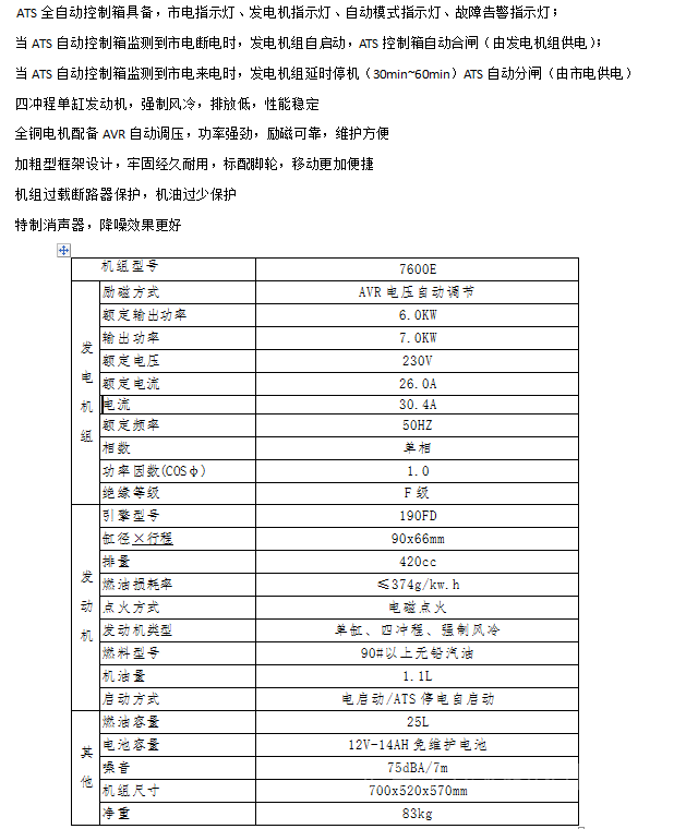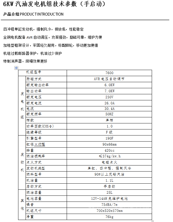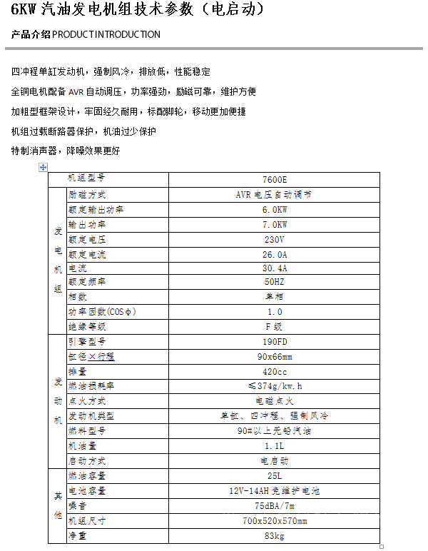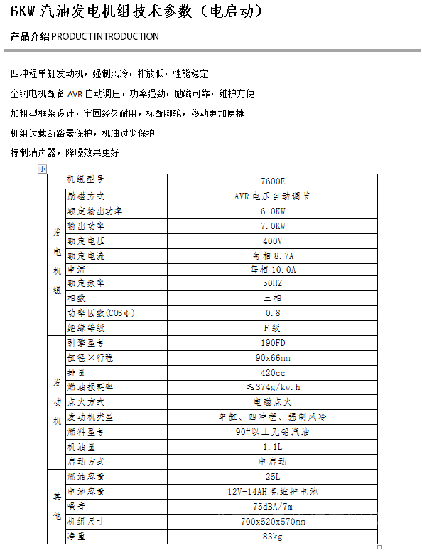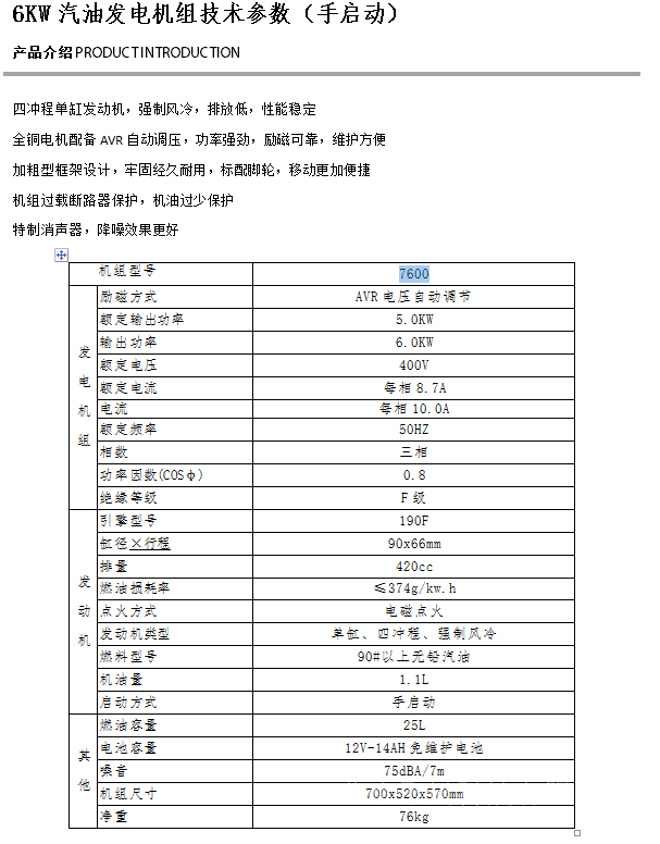 详细信息| 询价留言品牌:凯汇成 加工定制:是 型号:7600E 相数:单三相 发动机型号:190FD 频率:50 Hz 额定功率:5.0 KW 额定电压:230 V 起动方式:电启动 输出电压:400 V 额定电压:230 V 起动方式:电启动 -
