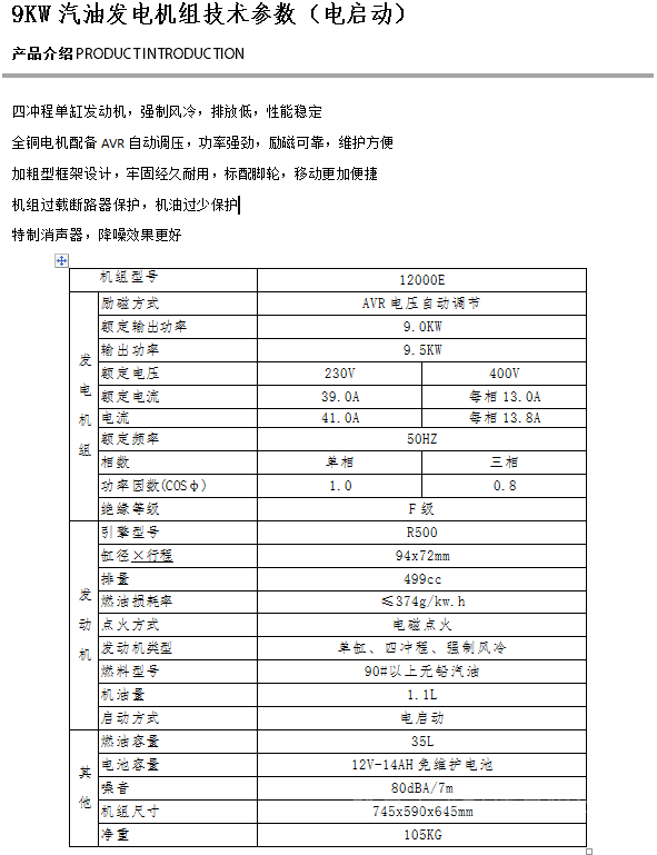 详细信息| 询价留言品牌:凯汇成 加工定制:是 型号:12000E 相数:单三相 发动机型号:R500 频率:50 Hz 额定功率:9.0 KW 额定电压:230 V 起动方式:电启动 输出电压:400 V 额定电压:230 V 起动方式:电启动 -