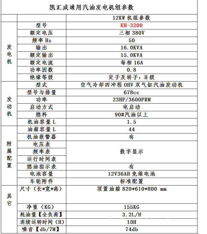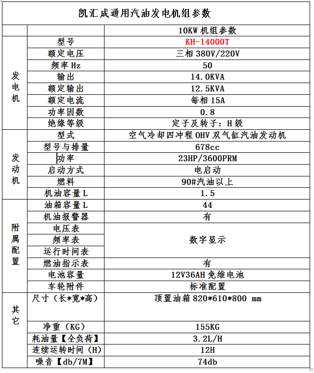 详细信息| 询价留言品牌:凯汇成 加工定制:是 型号:KH14000D 相数:单三相 发动机型号:678cc 频率:50 Hz 额定功率:10 KW 额定电压:230 V 起动方式:电启动 输出电压:400 V 额定电压:230 V 起动方式:电启动 -